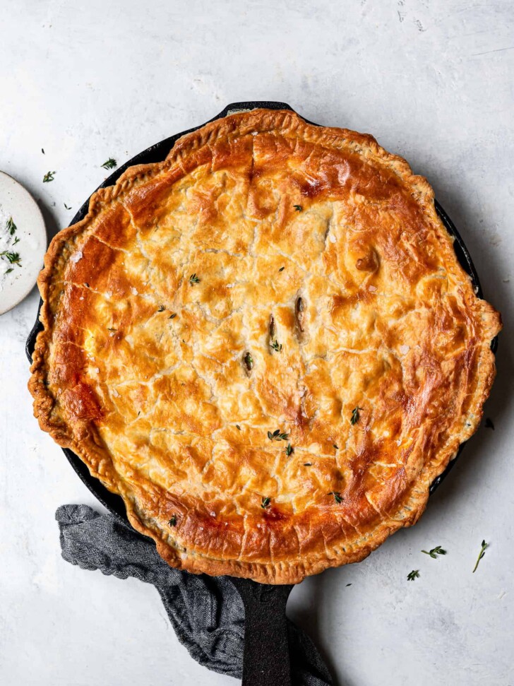 3. Coloque metade da massa na forma (grande) acrescente MUITO RECHEIO (a ideia é que você possa usar essa torta como um lanche da tarde, saudável e proteico) e cubra com a outra metade da massa. Polvilhe orégano por cima para decorar, se quiser.